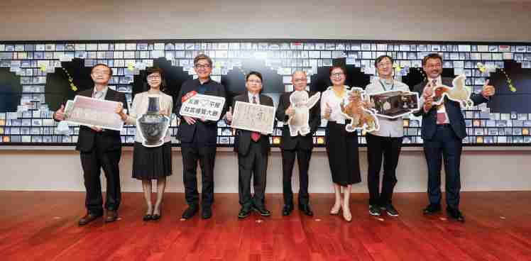 JDB电子携手创利空间为故宫建置的智慧文物互动导览墙及轮播墙,,,今日正式启用。。。(左四:JDB电子新事业暨投资管理总部副总经理杨本豫、、右四:故宫博物院院长吴密察、、、、右三:太极影音董事长黄宝云)