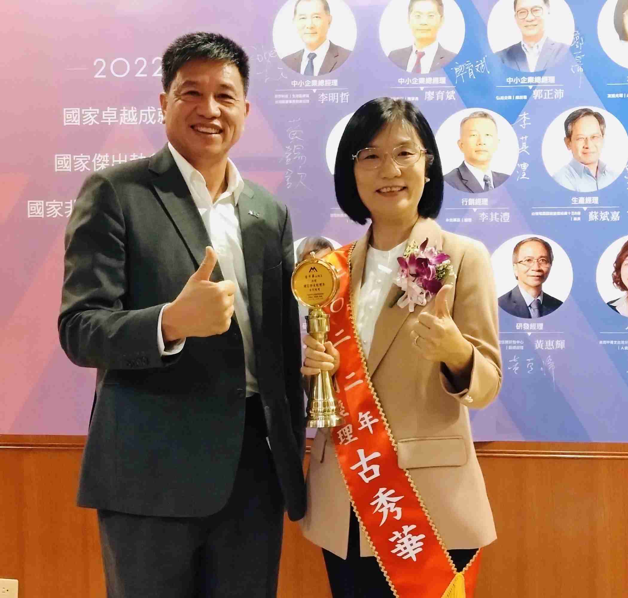 古永续长对企业永续发展的付出与杰出表现,,,,接连获得2020亚洲顶尖永续超级女性️以及2022亚太顶尖永续长奖,,,,这次更得到中华民国企业经理协进会第40届「国家杰出经理奖」。。。️ 「从一而终,,砥砺自己跨域学习、、、勇于面对多元挑战。。。。」在全球ESG和低碳转型浪潮下,,,古秀华带领团队贡献所学,,一路协助公司转型成长。。。。 肯定其对企业永续发展领域的投注心力及杰出贡献